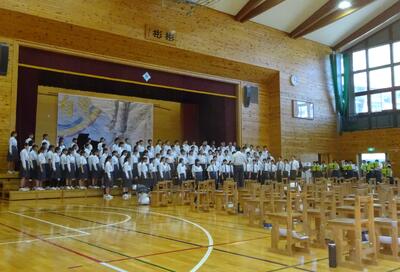 統合に向けて校歌も新しくなります。本年度で最後になる校歌を全校で合唱しました。