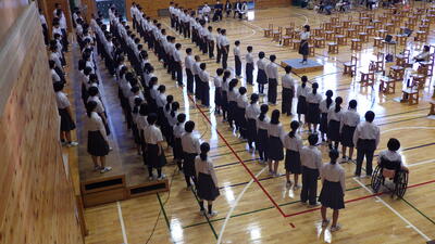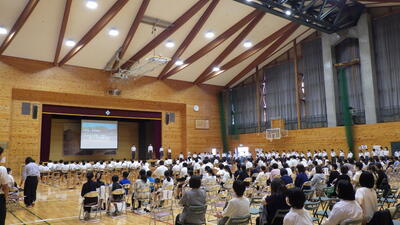 第8回峰翠祭初日が行われました。本日は開祭式、学年発表、意見文発表、新入生交流会、展示見学、体育祭が行われました(写真は2学年発表)。生徒の頑張る姿が随所に見られました。体育祭は今年も校庭で行われました。
